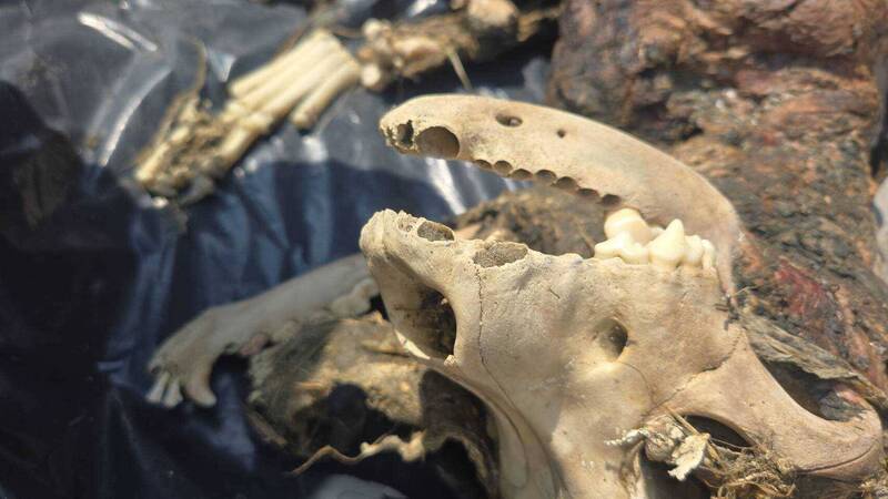 彰化虐狗案母犬離奇失蹤月餘,愛狗人士找到疑似白骨。(民眾提供)