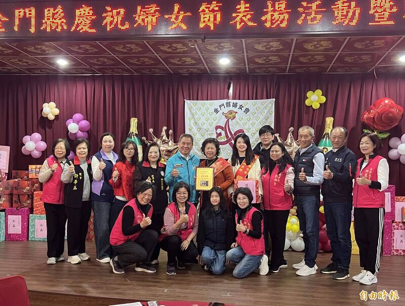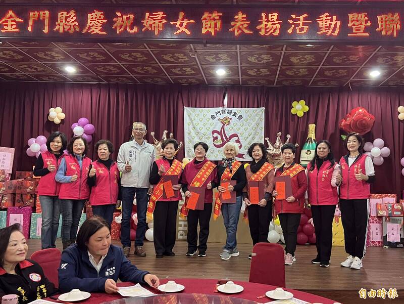 金門縣婦女會辦理婦女節表揚表揚大會,行政院金馬聯合服務中心執行長吳增允(左四)頒獎表揚績優小組長。(記者吳正庭攝)