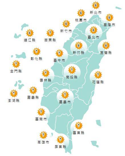 今日各地紫外線指數預報概況。(圖擷取自中央氣象署)