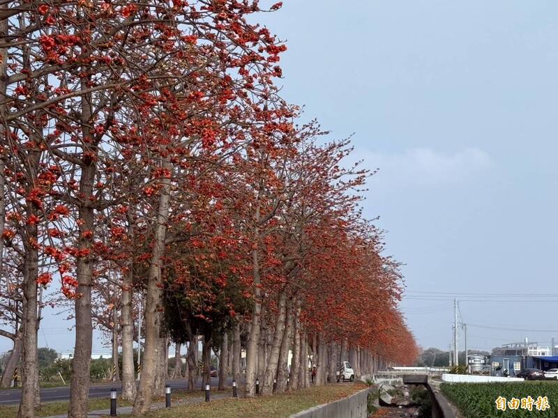 雲林縣虎尾鎮雲145線木棉花大道,正值盛開期,超過兩公里上看千株木棉花蕊綻放,一片鮮豔橘紅色「炸開」,吸引不少民眾駐足欣賞。在地社區協會表示,推薦上午9點或傍晚時分欣賞,光線能將木棉花之美凸顯出來。