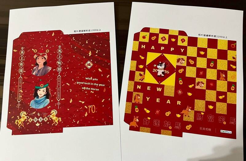 學員在參與「數位科技:優雅慢老」課程後,自行設計紅包袋。(台北市職能發展學院提供)