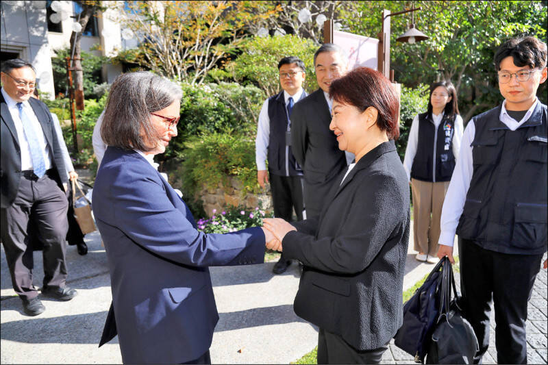 台中市長盧秀燕在華府與美國在台協會(AIT)華盛頓總部執行理事藍鶯(左)等見面;她首談軍購議題,直言不要輕忽戰爭發生可能性。圖為藍鶯上月到台中拜訪。(資料照)