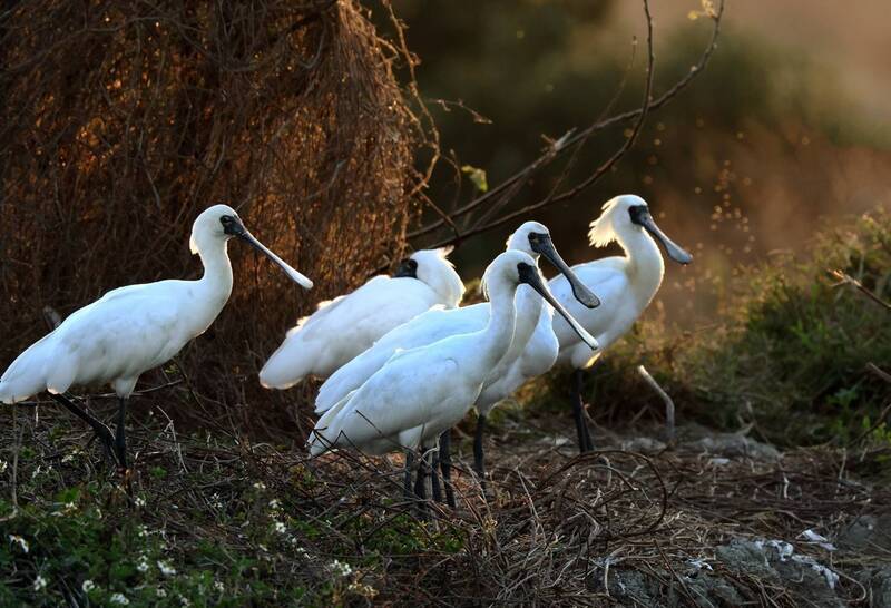 黑面琵鷺目前已換上亮麗的繁殖羽準備北返。(黑琵先生王徵吉提供)