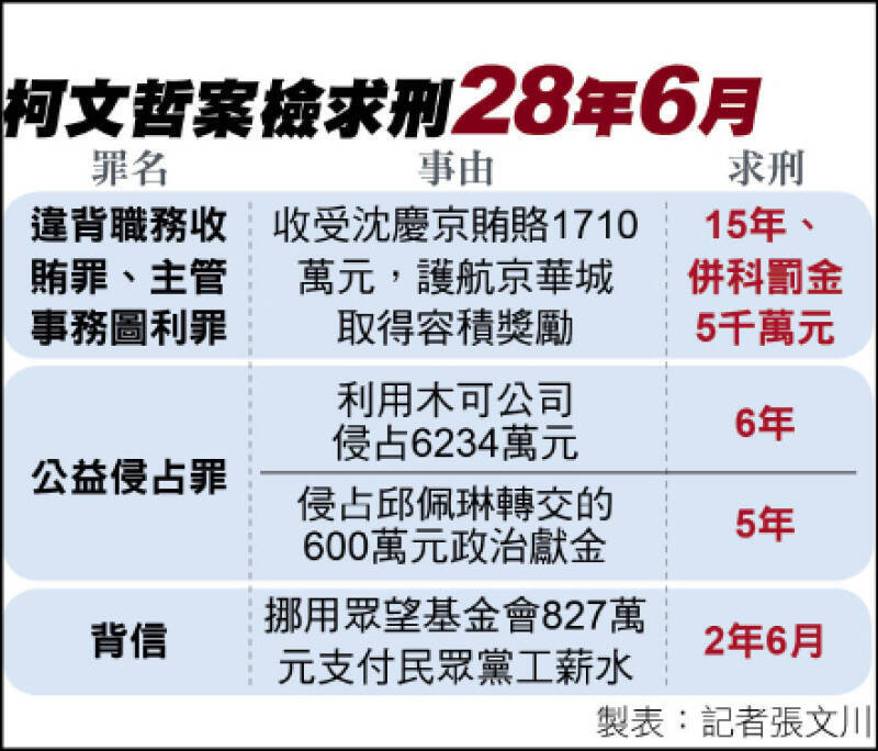 柯文哲案,檢求刑28年6月。