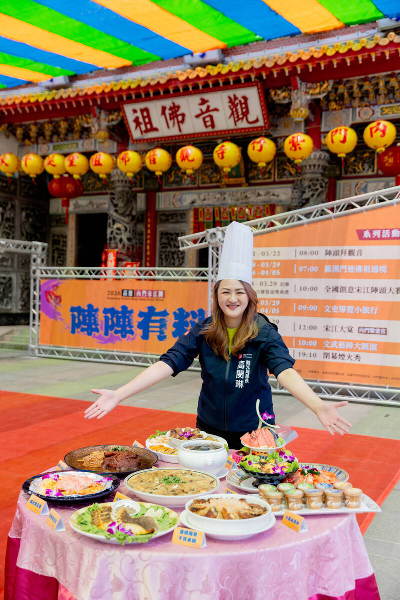 2026高雄內門宋江陣重頭戲之一的「宋江大宴」,今年由觀音佛祖神明欽點「四合一筵席」薛志龍總舖師掌鼎,推出10道功夫手路菜,3月28日起開席。