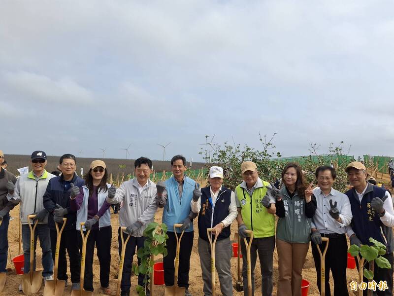 湖西菓葉保安林植樹活動,各界嘉賓齊心種下希望樹苗。(記者劉禹慶攝)