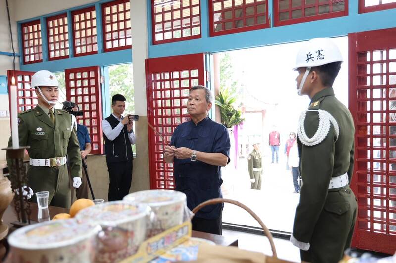南投縣忠烈祠舉行春祭抗戰陣亡將士典禮,由南投副縣長王瑞德(中)主祭上香祭拜。(南投縣府提供)
