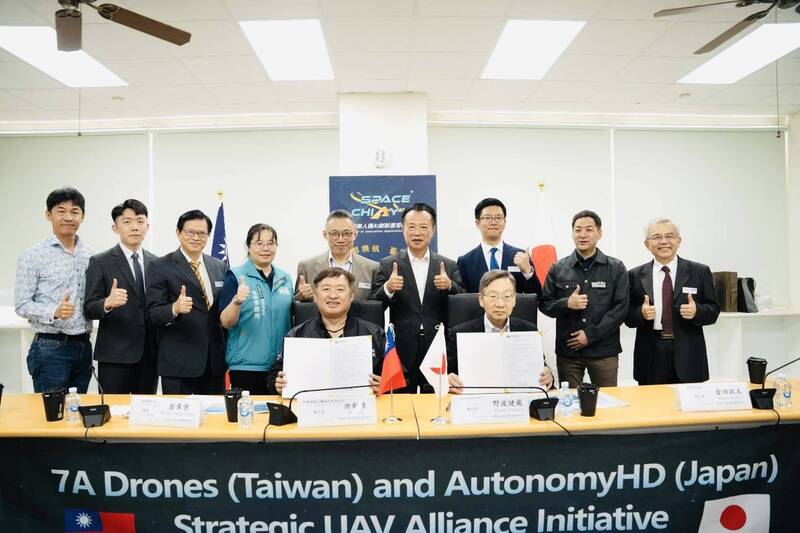 日本無人機企業Autonomy HD與台灣無人機廠商新樂飛簽署戰略合作MOU。(嘉義縣政府提供)
