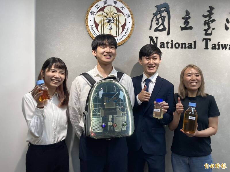 台大機械系副教授蔣雅郁(右一)成功開發出體積僅如「背包大小」的連續式生質柴油生產系統,被譽為「能源界超商咖啡機」,打破生質柴油小型化的瓶頸。(記者楊綿傑攝)