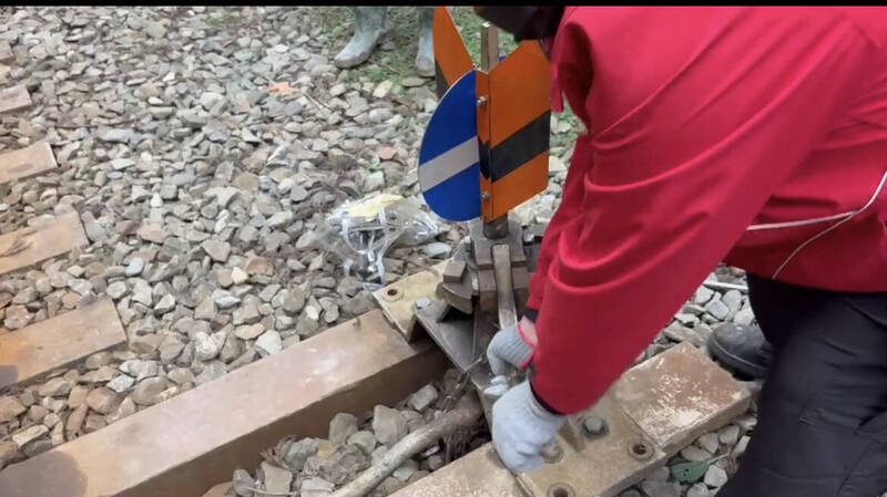 林鐵處派員檢查修復轉轍器。(林鐵處提供)