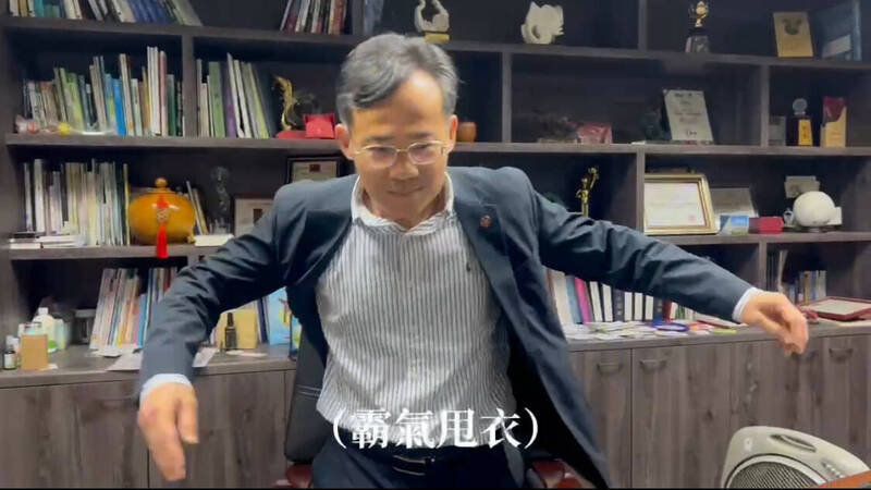 林隆諺模仿賭神搞笑甩衣。(台中一中學生提供)