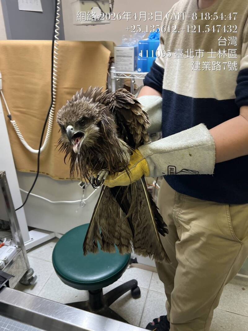 基隆市動保所在將黑鳶送到台北市的猛禽中心檢查。猛禽中心人員表示,這隻黑鳶約2歲左右,體重約900公克,目前沒有發現骨折或外傷,但精神及體力相當虛弱,猛禽中心先給予支持性治療,並抽血檢驗毒物反應。