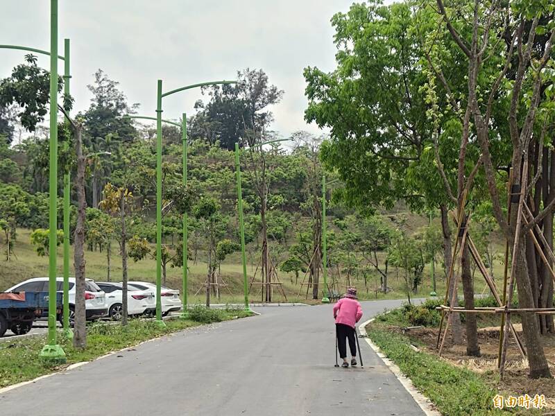 長輩獨自進入雙湖公園散步健身。(記者王榮祥攝)