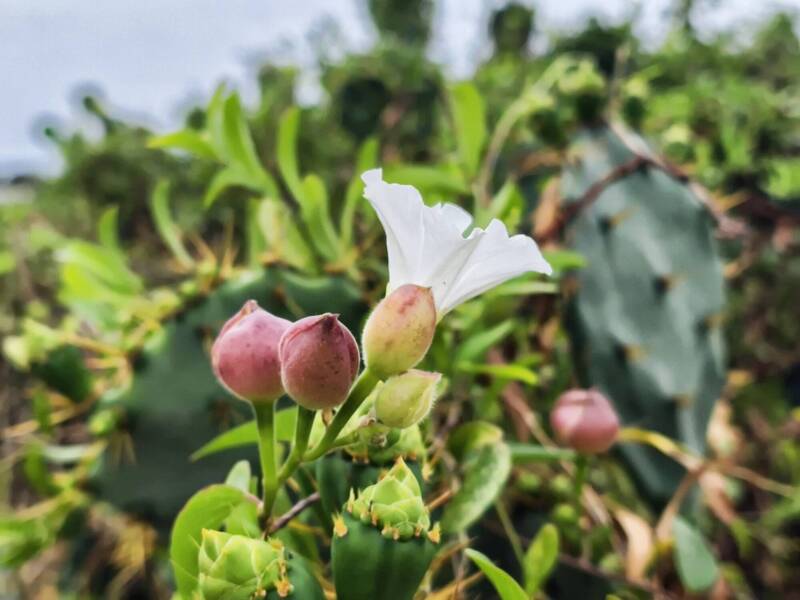 林園愛鄉協會創會理事長陳俊強指出,清明連假前濕地公園內的花朵「含苞待放」,卻遲遲無法開花,沒想到清明連假期間下雨,水分一次到位,包括金武扇仙人掌、盒果藤、馬鞍藤、紅海欖、苦楝、水黃皮、草海桐、毛西番蓮、苦林盤、長柄菊等一起綻放爭妍。