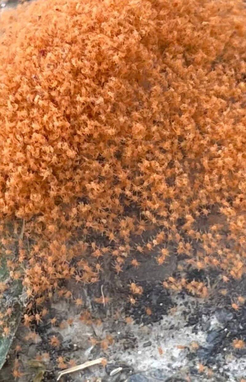 廢棄農田出現密密麻麻的紅蜘蛛。(民眾提供)
