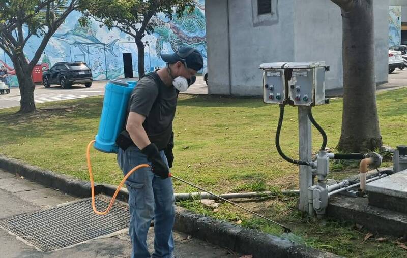 焚化廠內只能立即僱工噴藥防治。(民眾提供)