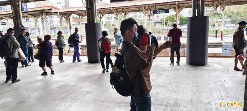 台鐵推出大甲媽、白沙屯媽兩款Q版紀念車票,吸引信眾搶購,當場拍照。(記者張軒哲攝)