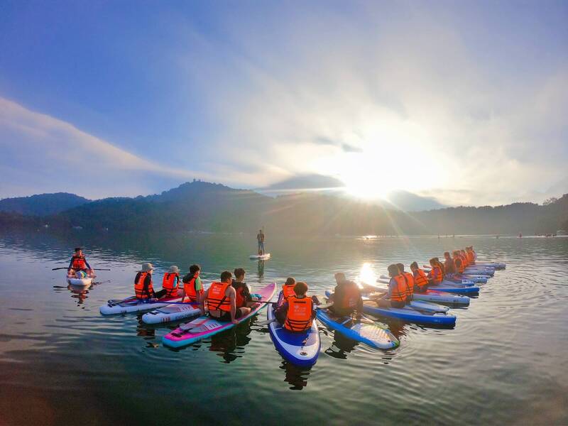 日月潭立式划槳(SUP)體驗。(劉宗泉提供)