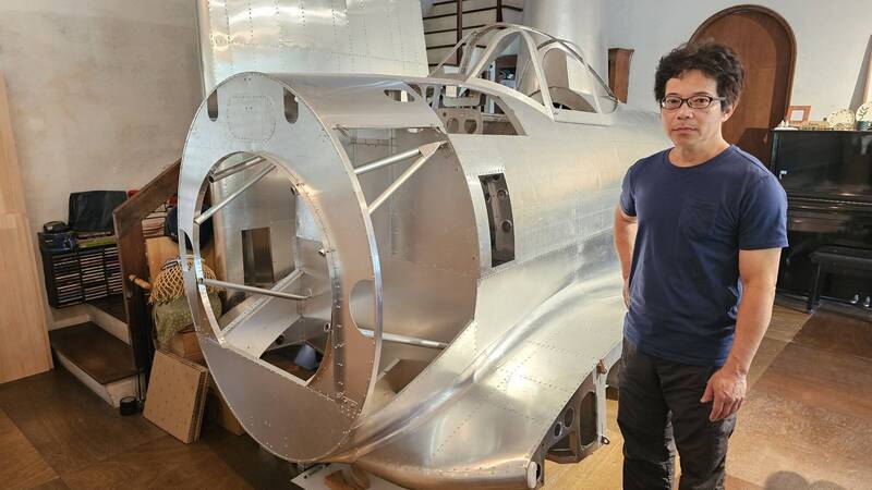 走進宜蘭三星安農溪附近一處恬靜民宿,映入眼簾的不是常見的裝飾擺設,而是一架散發著冷冽銀光的巨大戰鬥機機身。這架按1:1比例、純手工打造的日本二戰「一式戰鬥機」(隼),是職人陳士鉅耗時2年、打入3萬多顆鉚釘的心血結晶。曾任職於造船廠、精通木工的他,正用雙手將小時候對飛行的憧憬,化為落地生根的歷史見證。