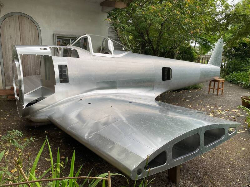 曾任職於造船廠、精通木工的陳士鉅,用雙手實現小時候對飛行的憧憬,打造一架1比1 的「隼」式戰機。(黃姓讀者提供)