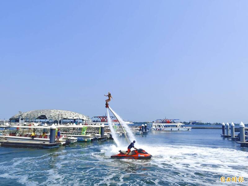 「大鵬灣帆船生活節」登場,水上鋼鐵人Peggy身穿比基尼獨挑大樑開場,辣翻全場。(記者陳彥廷攝)