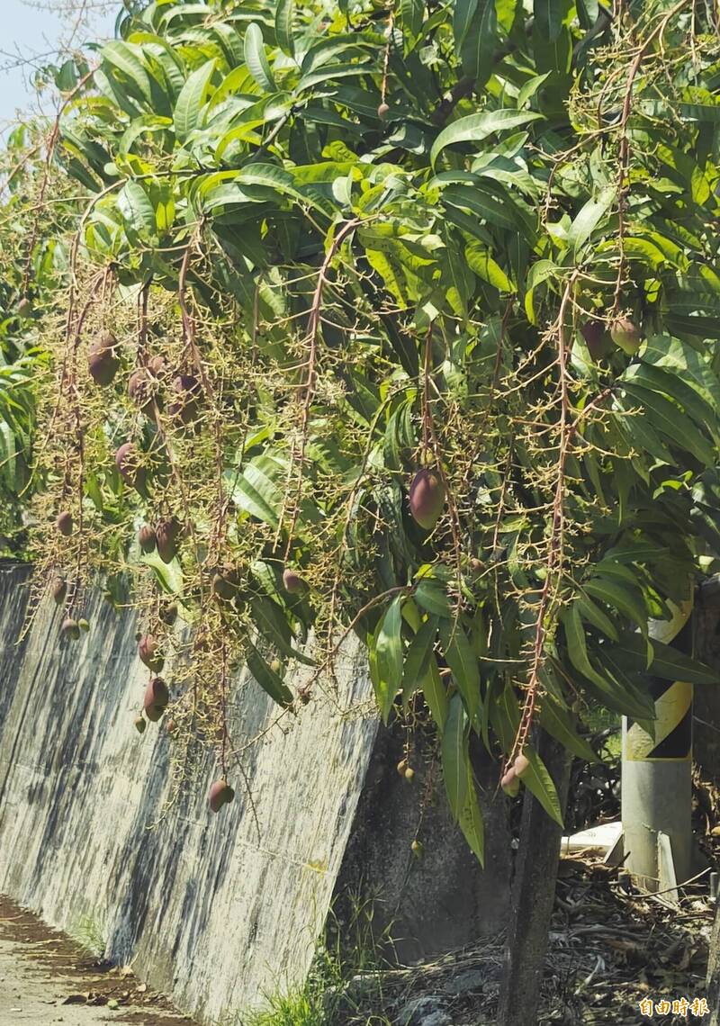 山區芒果開始結果,之前也有降雨,台南農改場呼籲及早疏果,並注意病蟲害防治。(記者吳俊鋒攝)