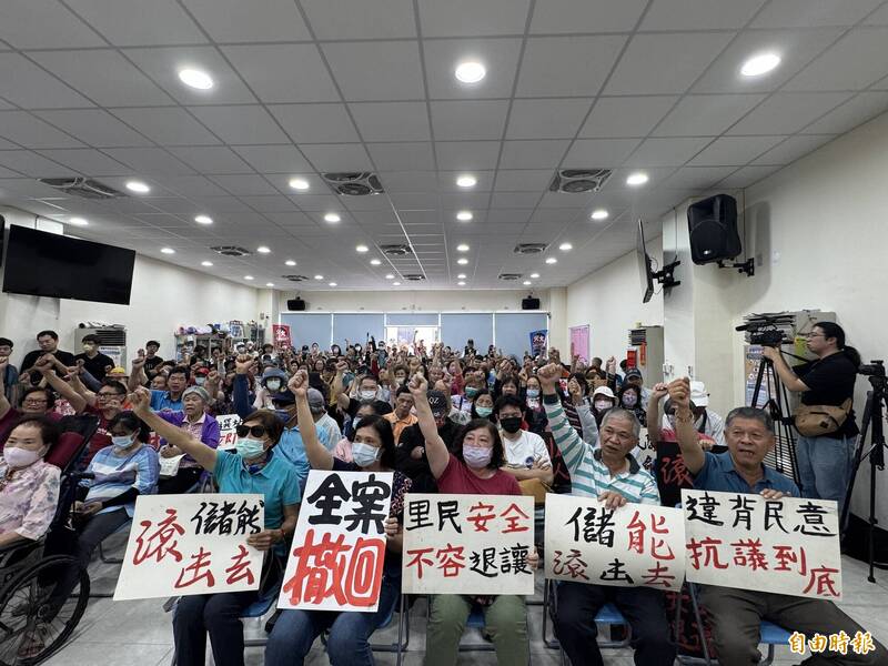 豐原反儲能自救會到場抗議。(記者歐素美攝)