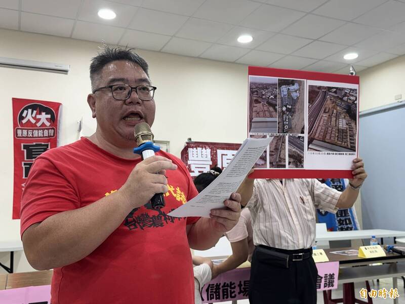 豐原反儲能自救會質疑業者違法施工。(記者歐素美攝)