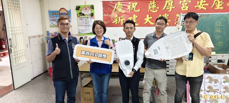 市議員邱愛珊(左2)爭取經費更換后里區智能路燈。(記者張軒哲攝)