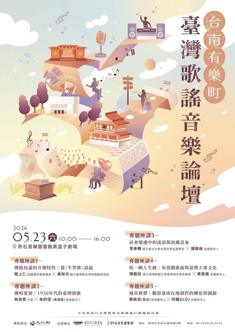 由台南市立圖書館主辦的「台南有樂町-台灣歌謠音樂論壇」5月23日登場,以1930年代以來的台語流行音樂為主軸,邀集音樂研究者與創作人齊聚,帶領民眾重溫台灣流行音樂的時代記憶。