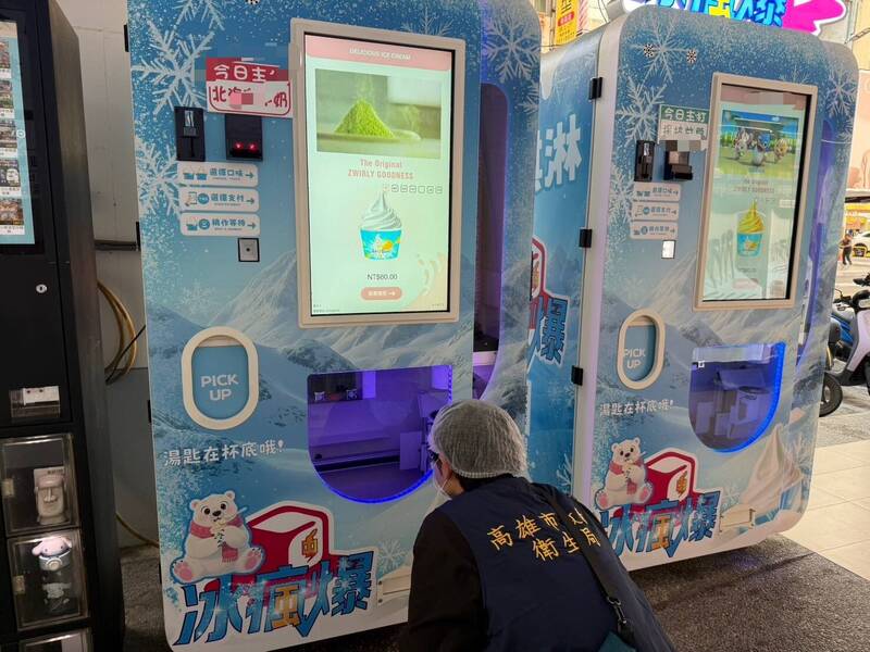 衛生局人員查冰淇淋自動販賣機。(高雄市衛生局提供)
