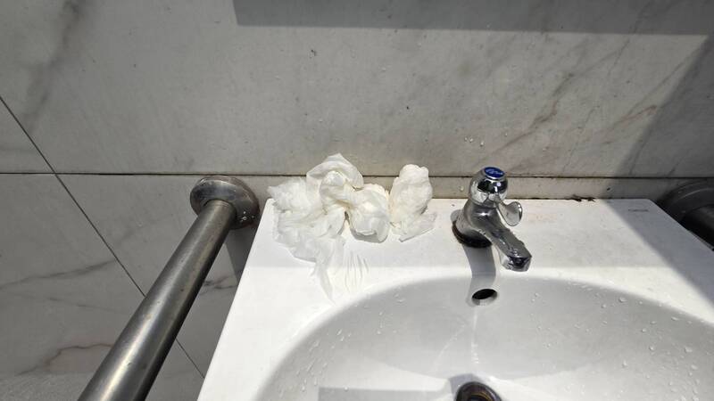 一江公園廁所髒亂的情形,缺乏有效整理。(台北市議員林亮君辦公室提供)