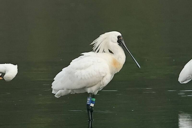鳥友觀察W48黑面琵鷺仍停留桃園。(福爾摩沙野鳥保育協會徐瑞芳拍攝提供)