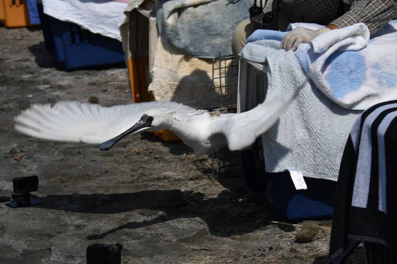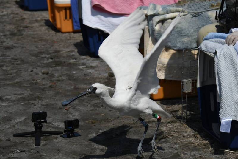 W49黑面琵鷺在台獲救野放。(生物多樣性研究所提供)