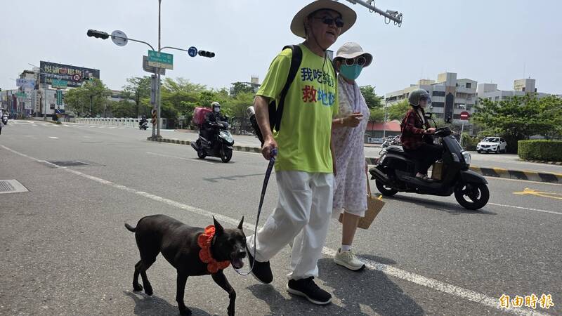 「純素台灣」健走行動,結合動物友善理念,民眾帶著寵物愛犬同行。(記者洪瑞琴攝)