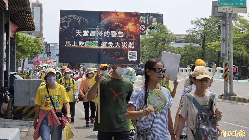 「純素台灣」2點5公里健走人龍,倡議純素生活與環境永續。(記者洪瑞琴攝)