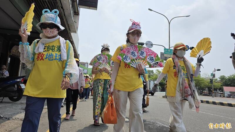 參加隊伍「水果裝」鮮明打扮,達到吸睛宣導效果。(記者洪瑞琴攝)