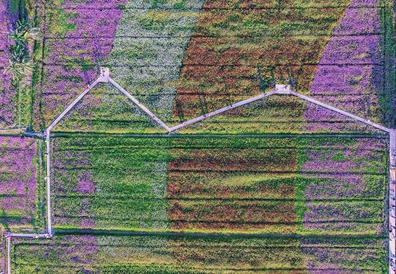 攝影家許釗滂捕捉的竹北「陌上花開」波斯菊花海。(圖由攝影家許釗滂提供)