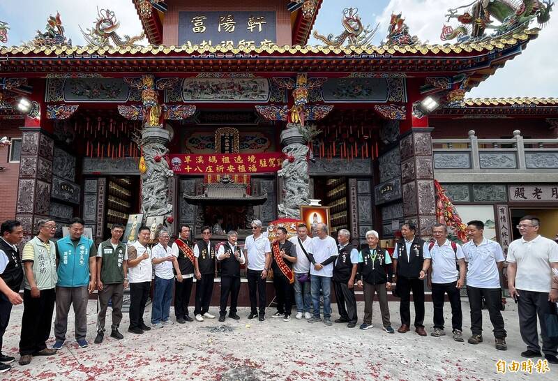 「旱溪媽祖遶境十八庄」今天抵達「富陽軒八卦祖師廟」駐駕一晚,預計明天一早起駕。(記者陳建志攝)