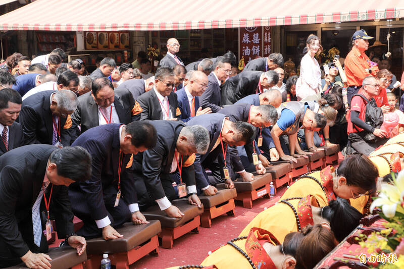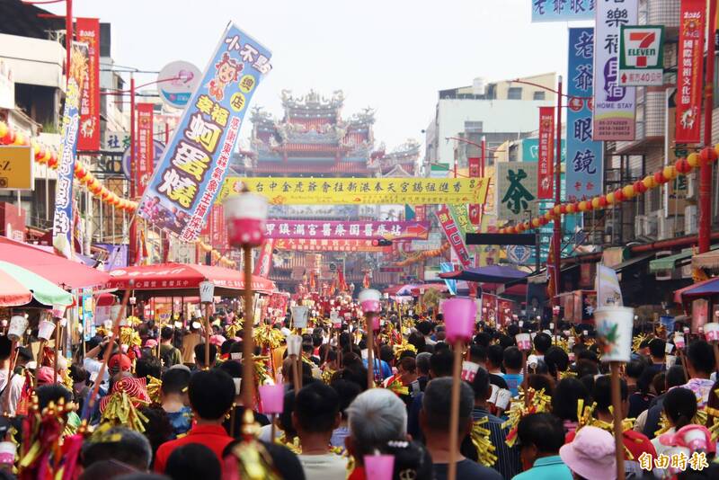 大甲鎮瀾宮媽祖遶境進香在新港奉天宮舉辦祝壽大典,數萬人參與虔誠祈福。(記者林宜樟攝)