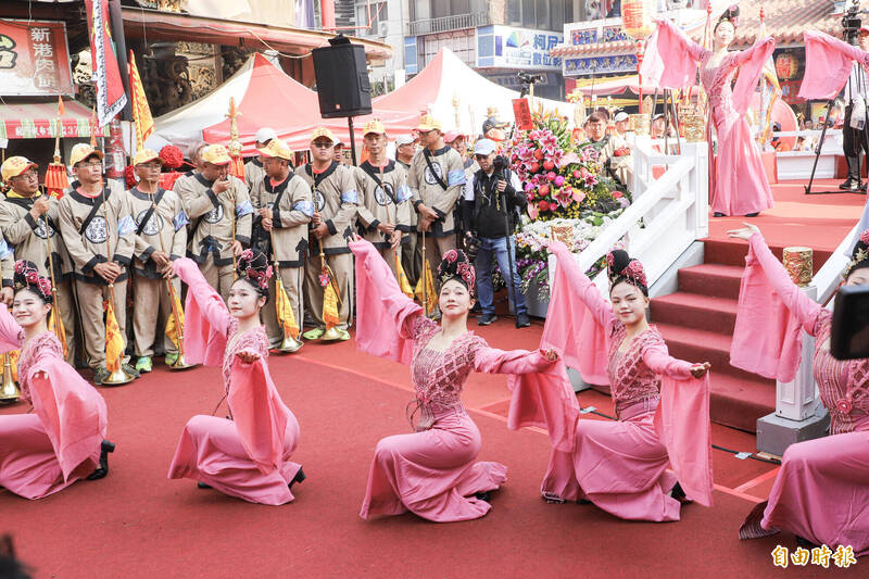 舞者進行迎神舞樂。(記者林宜樟攝)