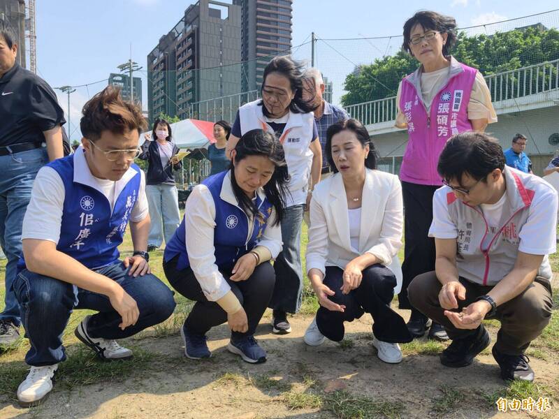 立法委員萬美玲(右二)邀請地方人士會勘中路足球場。(記者謝武雄攝)