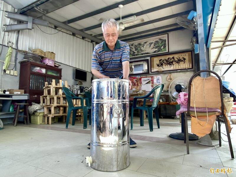蘇松山購置蜂蜜採收器採蜜。(記者洪臣宏攝)
