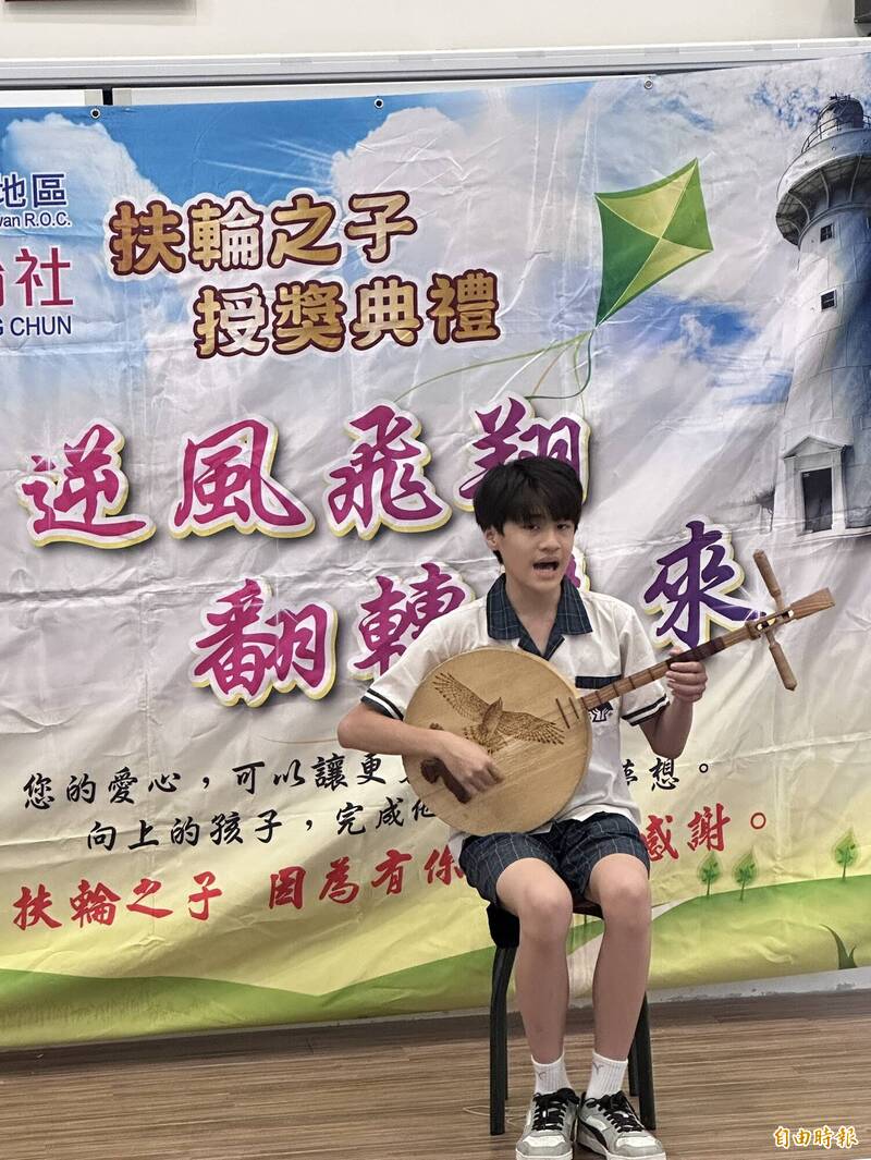 活動現場,甫獲恆春民謠大賽衛冕冠軍的潘宥任,額外獲贈恆春民謠傳藝師董娘加碼的1萬元助學金。他在淚光中抱起月琴,現場彈唱滿州民謠古調,將滿心感激融入悠揚琴聲中,成為全場最溫馨的焦點。