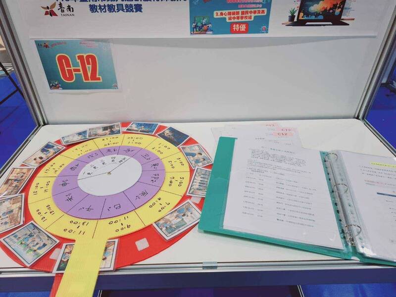 麻豆國中教師黃美慧作品《十二時辰作息時間盤》展現創新教具設計。(南市教育局提供)