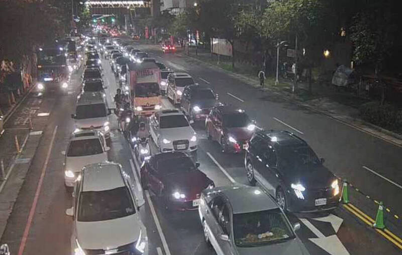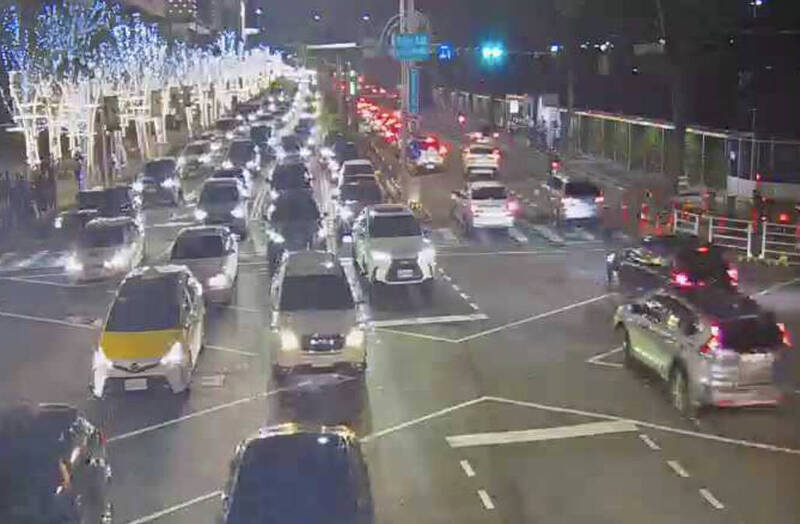 今晚賽事結束加上洲際百貨車潮,崇德路十九路及四平路塞車。(翻攝自交通局即時影像)