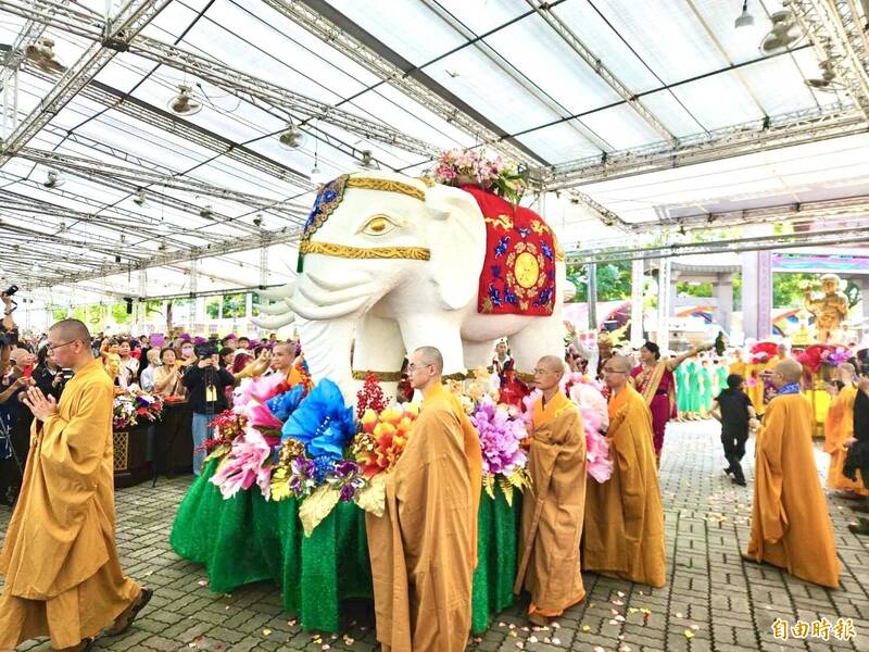 大典由氣勢磅礡的迎佛進場揭開序幕,陣容極具視覺張力。慈明高中學生揮舞佛旗領頭,緊接著摩耶夫人、太子聖像及巨大的六牙白象莊嚴亮相,展現深厚的文化底蘊。最令外籍僧侶驚豔的是,典禮打破宗教藩籬,邀請安息日會、天主教會及原住民藝文團體共同參與,象徵寶島台灣特有的宗教包容力,不少外籍僧侶紛紛拿起手機紀錄這場「國境之南」罕見的宗教融合盛況。