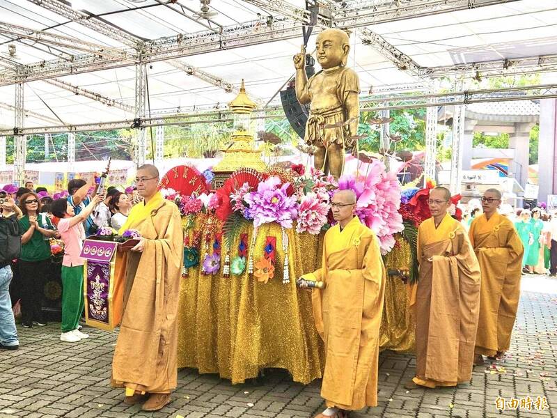 佛誕萬人湧入屏東,儀式莊嚴。(記者蔡宗憲攝)