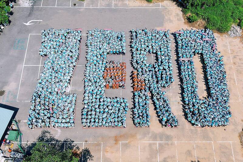 近2000名與會大眾,以人牆排成「ZERO」圖騰,宣示執行「零碳排」。(佛光山提供)