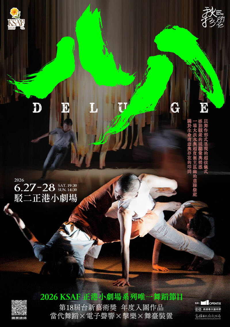 秋杉所在《八八》結合舞蹈、聲響與儀式意象,回應高雄甲仙大洪水記憶。(高市文化局提供)